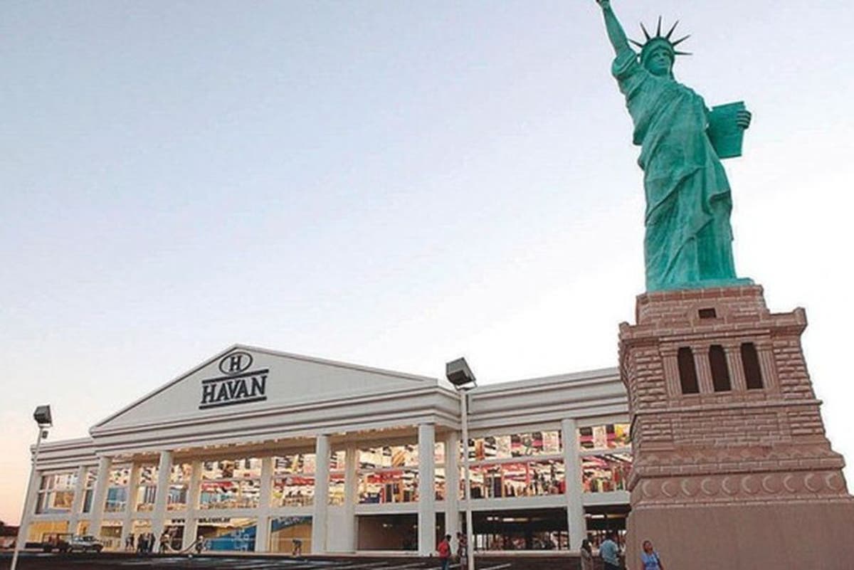 Estátua da Liberdade, da rede de lojas do empresário Luciano Hang, que exalta as cores verde e amarelo do Brasil, é símbolo do poder americano. Leia aqui