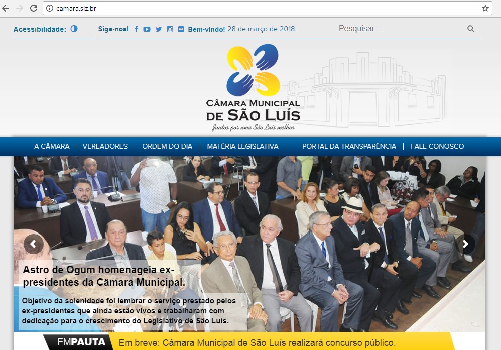 Desde o final do mês passado, a Câmara Municipal de São Luís (CMSL) passou a utilizar novo domínio em sua página na internet www.camara.slz.br A substituição da extensão ‘.leg.br’ por ‘.slz.br’ tem o propósito de representar o município de São Luís (MA) entre os Domínios de Primeiro Nível criados e mantidos pelo Núcleo de Informação e Coordenação do Ponto BR (NIC.br).