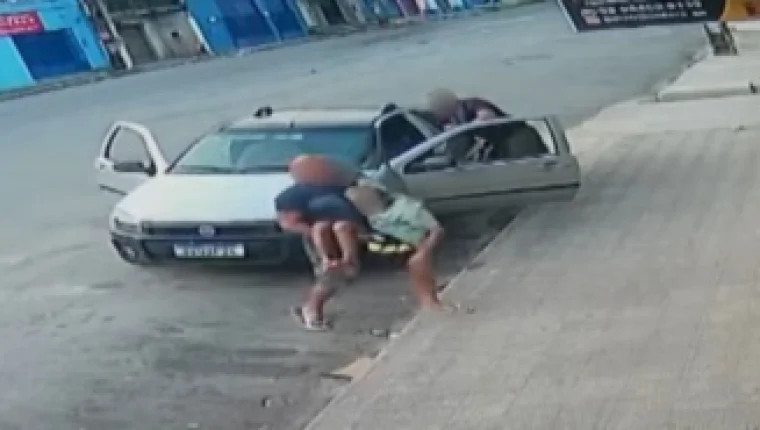 Em seguida, o passageiro vai até o banco da frente do carro, pega o idoso no colo e o deixa na calçada. Logo depois, os dois homens vão embora no veículo. Outra câmera registrou uma idosa sendo transportada na carroceria do veículo pelos mesmos homens.