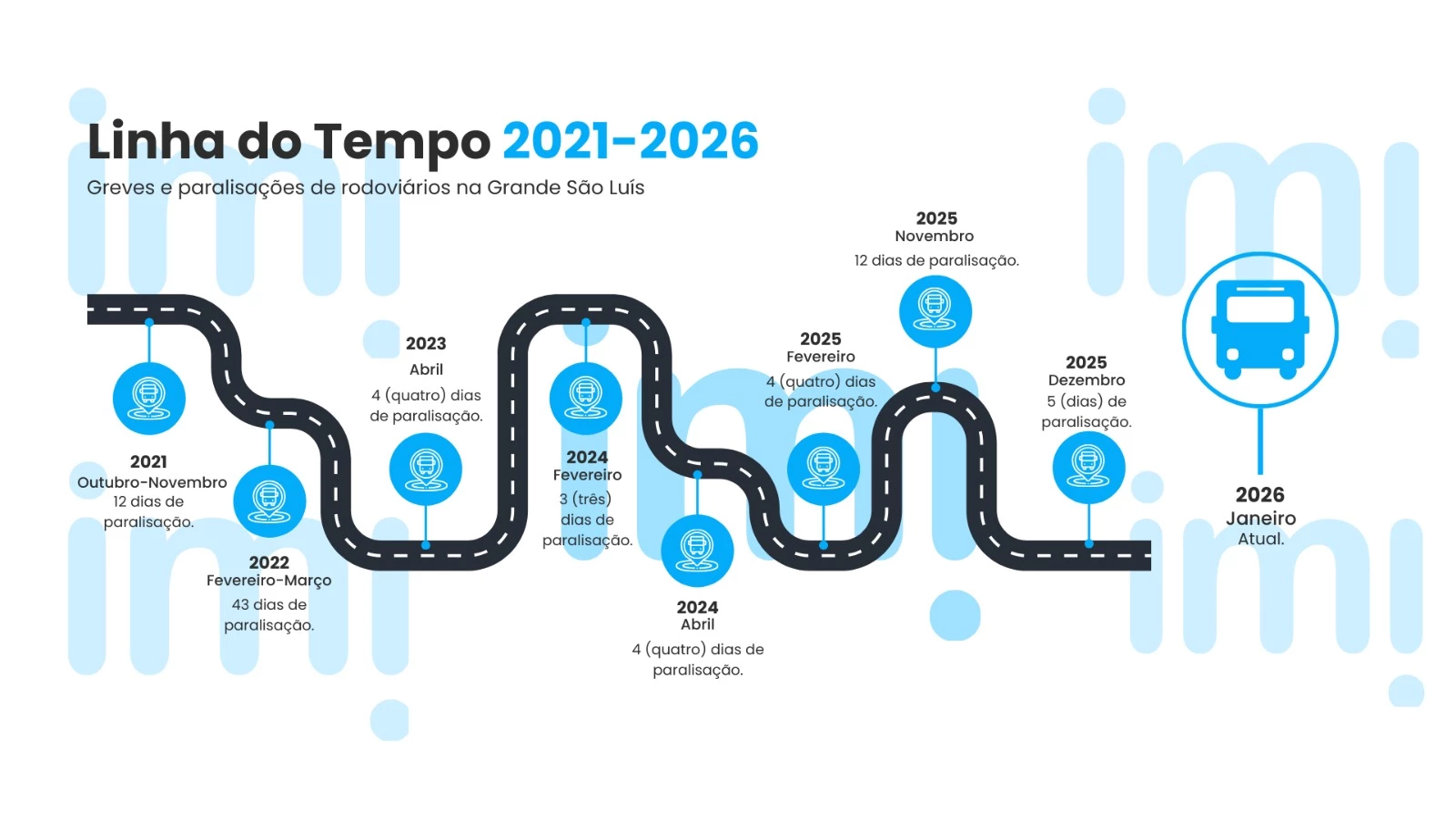 São Luís e a região metropolitana enfrentam sucessivas greves no transporte público. Ao longo dos últimos anos, rodoviários cruzaram os braços em diferentes períodos, deixando a capital sem ônibus e afetando a rotina de milhares de passageiros. A atual gestão do prefeito Eduardo Braide lida com sequência de paralisações desde 2021. Para mostrar a linha do tempo sobre o tema, o site Imirante.com fez uma cronologia das greves entre 2021 e 2026.